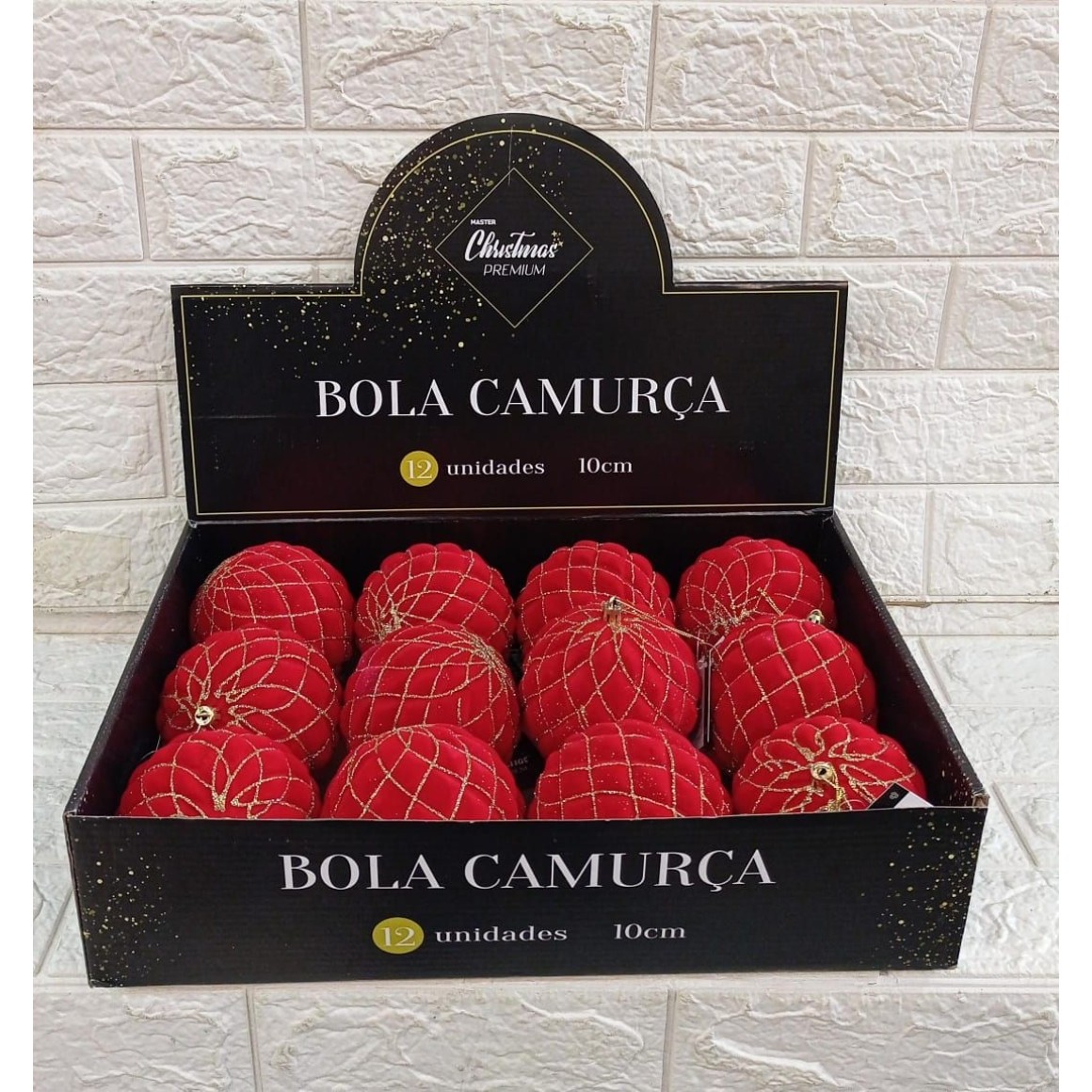 BOLA SD3438 CAMURCA VERMELHA C/BORDAS DOURADAS 10CM
