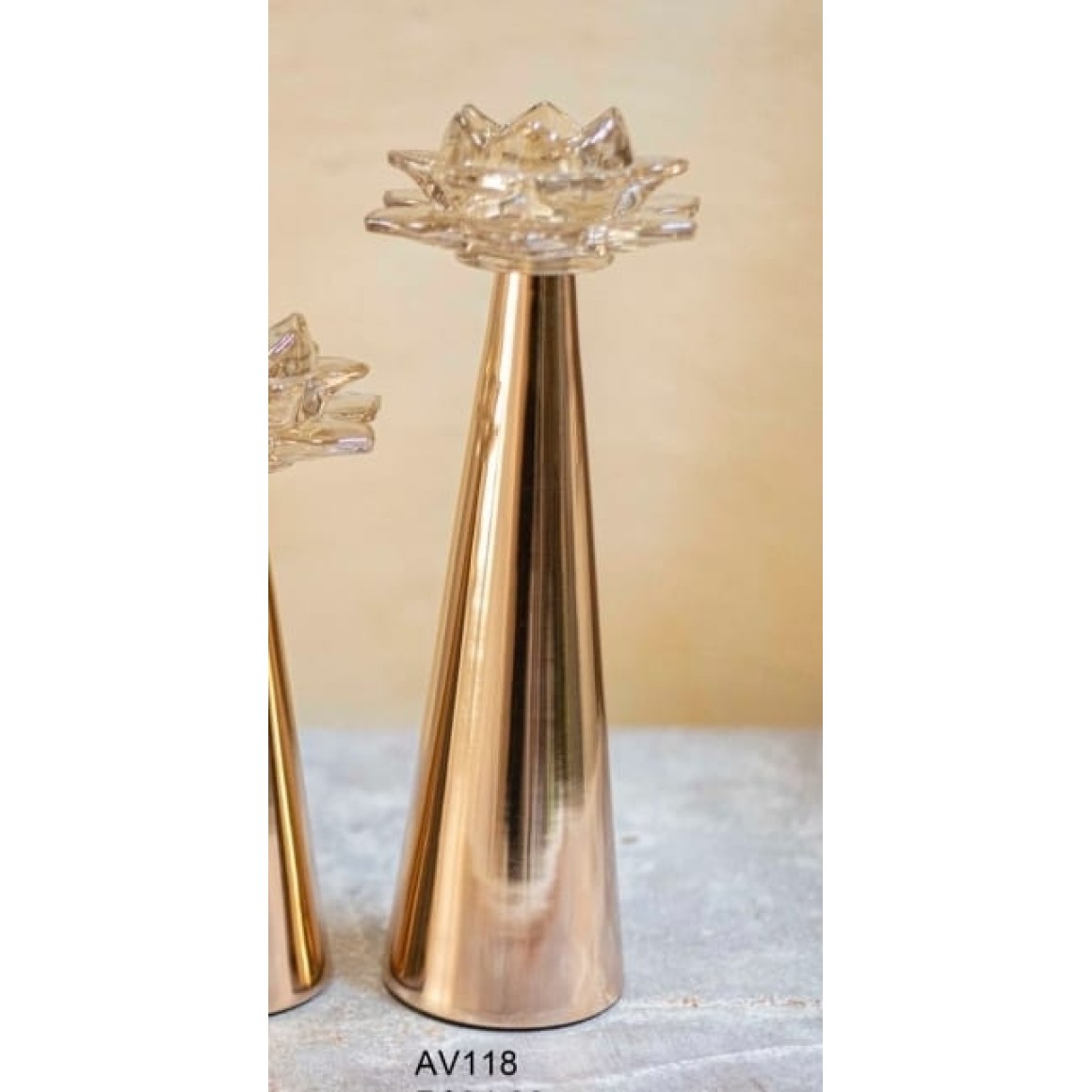 CASTIÇAL AV118 DETALHADO G FORM. FLOR CONICO EM VIDRO AMBAR A30XL12CM