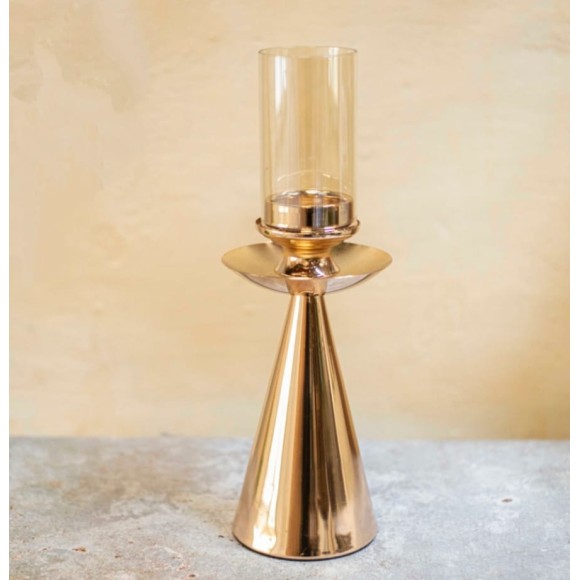CASTIÇAL AV101 CILINDRICO MEDIO EM VIDRO AMBAR ALTO A37XL13CM