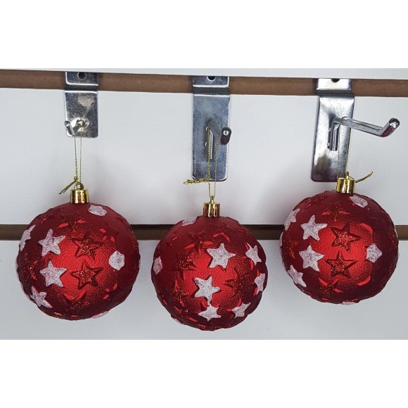 BOLA AB469 NATALINA C/3 VERMELHA C/ ESTRELAS BRANCAS A8CM