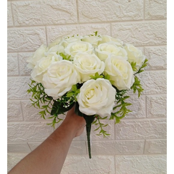 FL BUQUE FD-0004BR DE ROSA BRANCA C/18 GALHOS A38CM