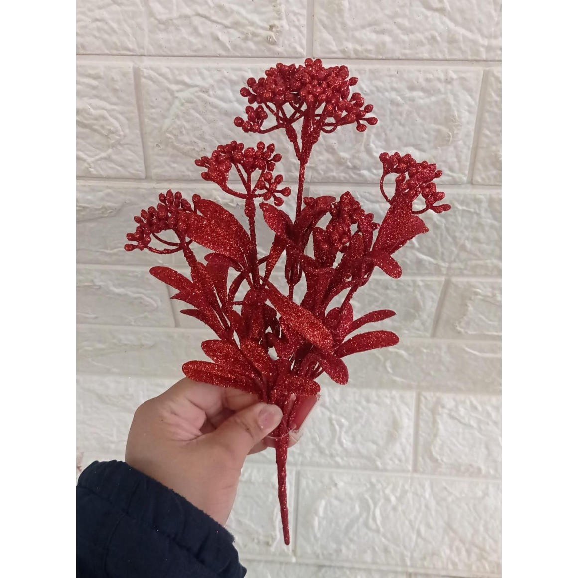 BUQUE FLB0101V BOLINHA GLITER VERMELHO NATALINO 30CM
